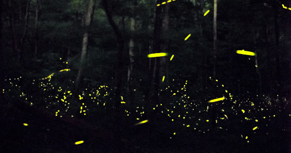 Synchronous fireflies are one of the Smokies’ most unusual natural events. For a brief window each year, thousands flash in near-unison. Scientists believe the coordinated pattern is tied to mating behavior.