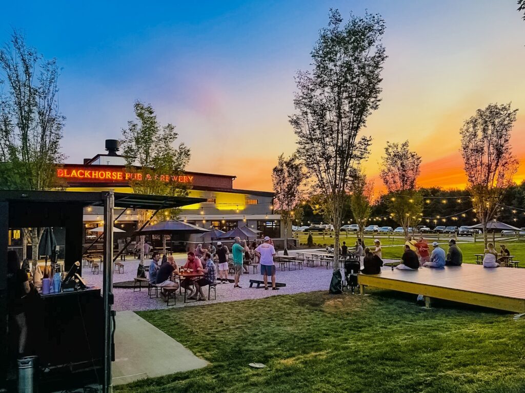 Blackhorse Pub & Brewery, located in Alcoa, is a restaurant that serves beers crafted in Tennessee. They have live music in the beer garden on Friday and Saturday nights.