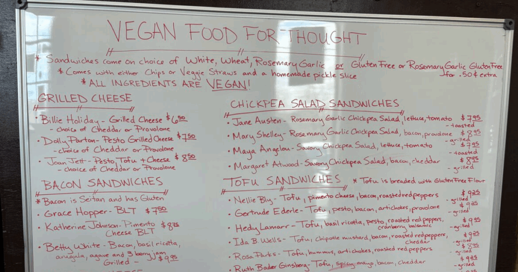 Southland Books & Café vegan menu.