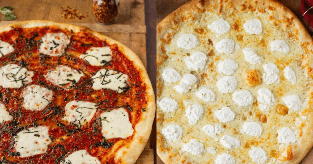 Jaboni’s Pizzeria Margherita Pizza (left) and Grande White (right)